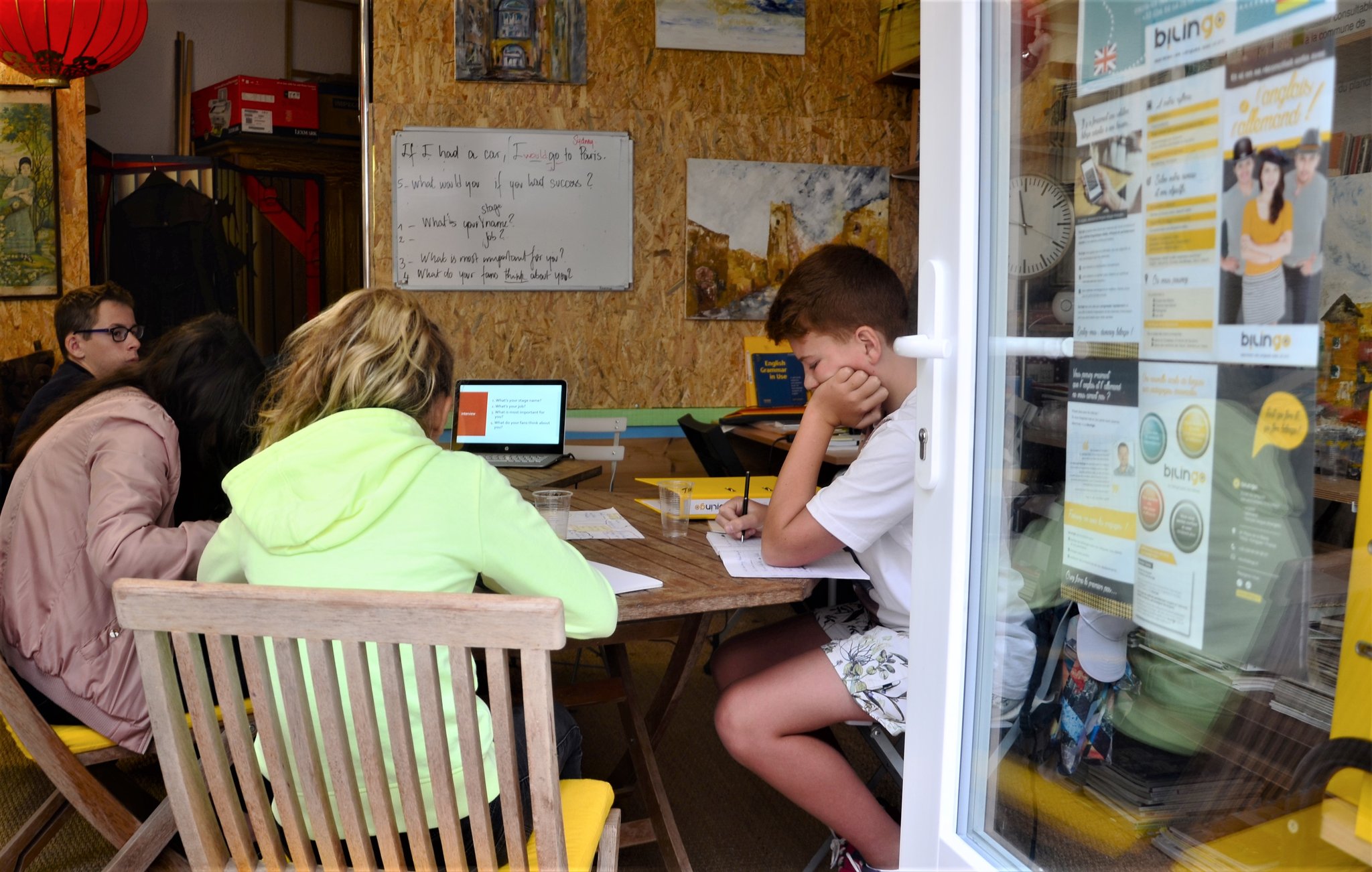 Cet été à Evian, les stages d'anglais et d'allemand ont fait des émules. Intensifs, ils ont permis aux 16 élèves participants de replonger dans la langue de leur choix et de réviser, renforcer et surtout mettre en pratique tout ce qu'ils découvraient ou redécouvraient. Résultat: beaucoup d'échanges et d'interactions, un jeu de réflexion et de mémorisation, des interviews créées de toute pièce et des rôles sur-mesure pour appréhender l'anglais et l'allemand avec plaisir! Les élèves de Terminale, eux, ont mis l'accent ( et l'intonation) sur ce qui les attend cette année : les épreuves du bac. Mise en situation d'examen oral, débats, rappels et consolidation des connaissances grammaticales étaient au menu toue une semaine, à raison de 2 heures par jour.